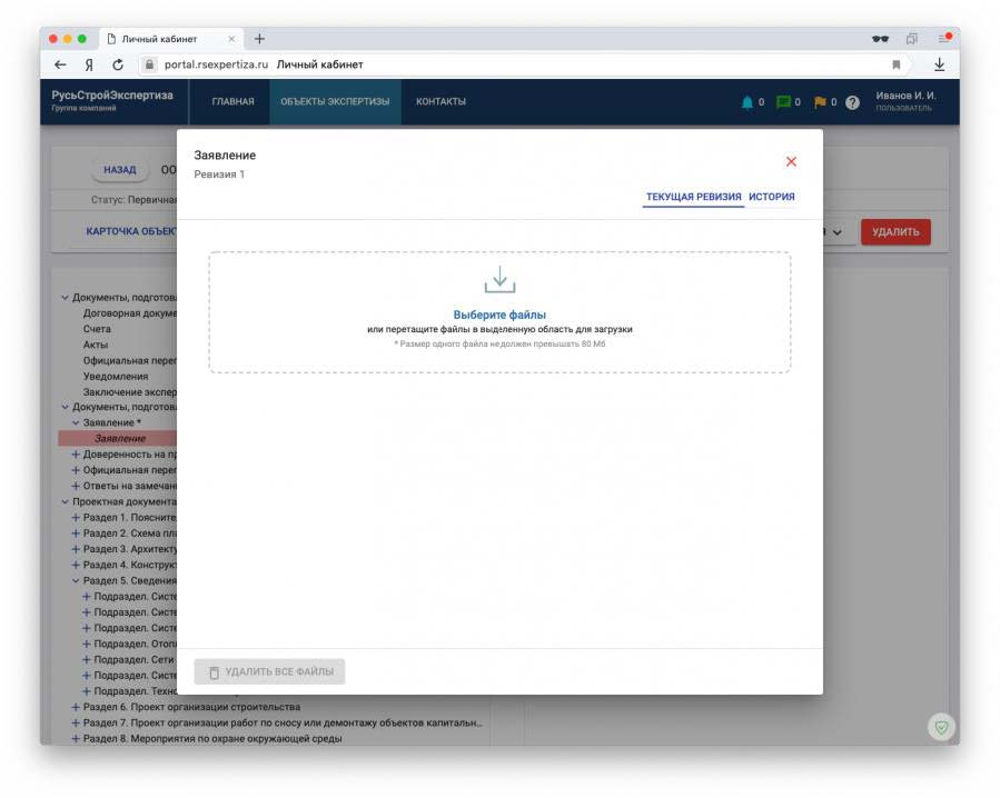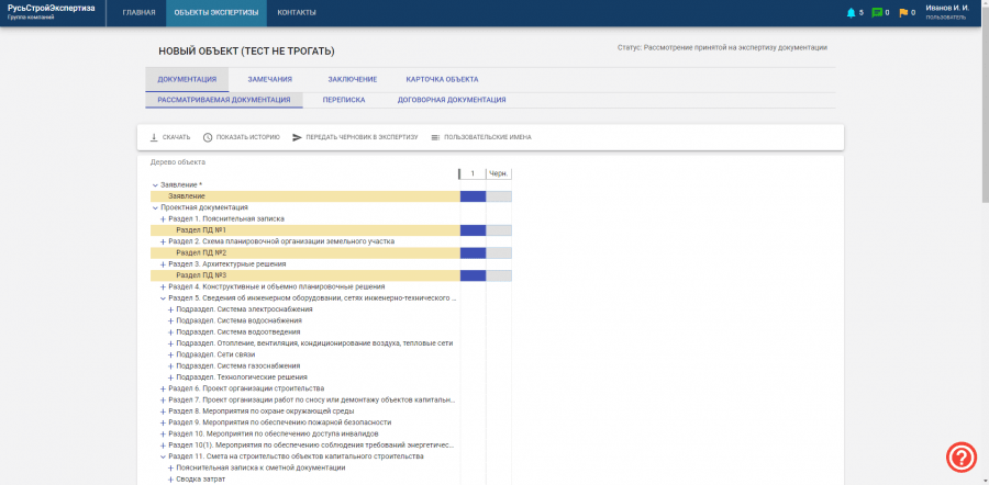 Первоначальная загрузка объекта на экспертизу
