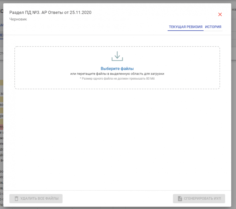 Откроется окно загрузки документации. В этом окне можно либо перенести необходимый документ или выбрать его из папки. После загрузки это окно можно закрыть и серый прямоугольник станет синим.